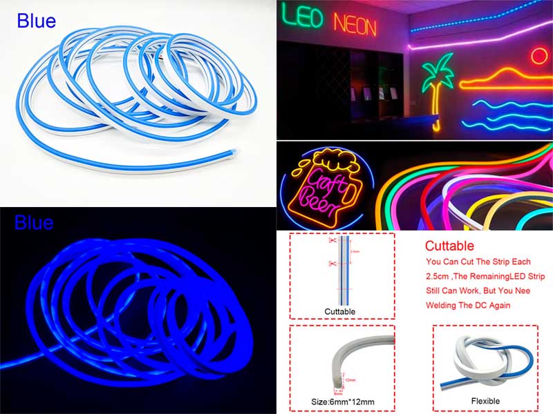 Tub LED flexibil pentru decor auto, lungime de 5 metri și lumină albastră intensă, alimentat la 12 V. Perfect pentru personalizarea interiorului mașinii, contururi ambientale sau accente estetice discrecte.