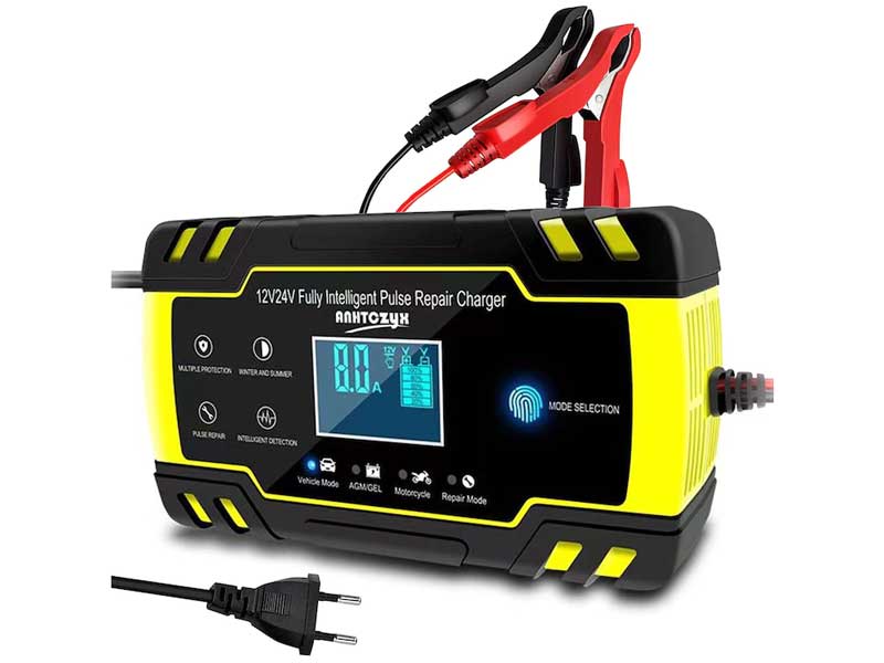 Incarcatorul detecteaza automat tensiunea curenta si nu necesita setari manuale. Pe ecran se poate afisa tensiunea, curentul, capacitatea bateriei, temperatura, starea de incarcare etc. Cand bateria este conectata la sursa de alimentare, borna pozitiva a bateriei (+) este fixata cu clema rosie, iar borna negativa a bateriei (-) cu clema neagra . Se opreste automat dupa finalizarea incarcarii.
