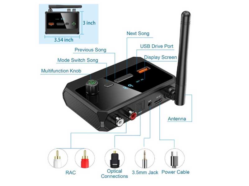 Adaptorul Bluetooth pentru receptoare are cea mai recenta versiune Bluetooth 5.3 si este echipat cu cel mai recent codec wireless pentru performanta calitatii sunetului HIFI HD, oferind streaming audio fara fir intotdeauna clar, aproape fara intarziere sau degradare a calitatii sunetului. Ecranul LCD afiseaza modul de muzica si nivelul volumului.