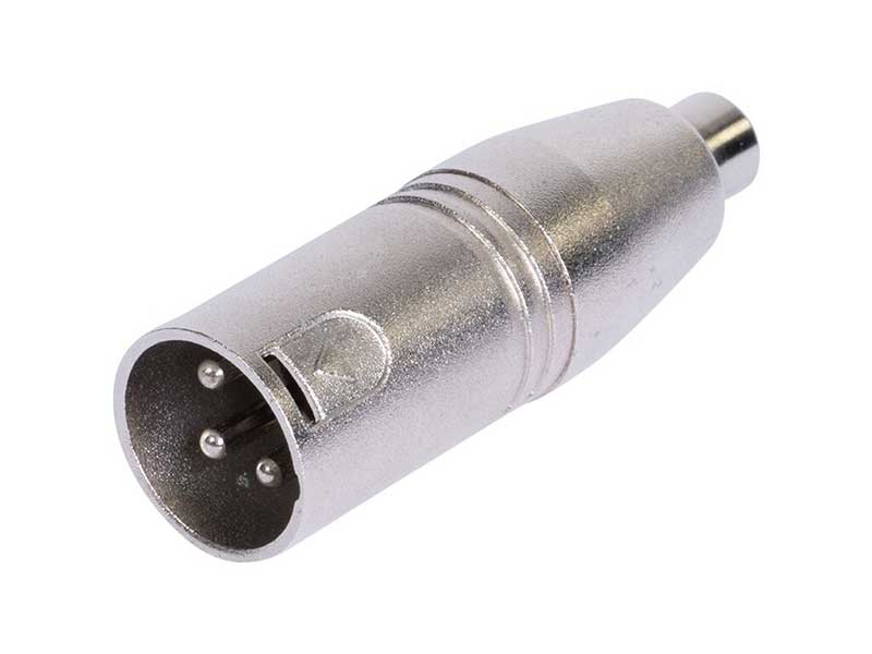 Adaptor audio pasiv utilizat pentru conversia semnalului dintre conectorii XLR (3 pini) și RCA. Permite conectarea echipamentelor audio profesionale la sisteme cu intrări sau ieșiri RCA nebalansate.