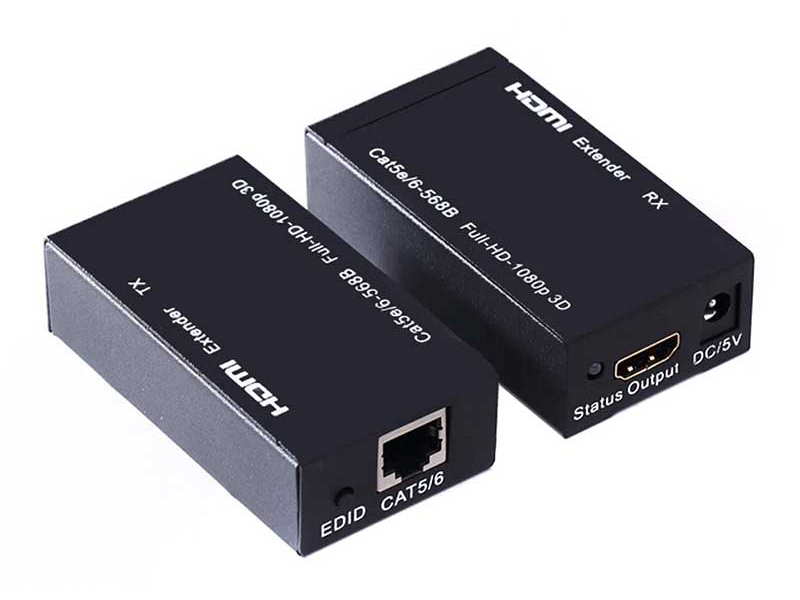 The HDMI Extender by CAT-5e/6 uses 1 piece of CAT-5e/6 cables to extend the HDTV display up to 30 m for 1080p using a Cat6 cable the transmission distance can be up to 60 m for 480p while using CAT-5e/6 cable. It not only breaks the limitation of the HDMI cable transmission length, but also CAT-5e/6 has more ? exibility and convenience in cable construction. It is equipped with HDMI connectors and is capable of supporting DVI equipment when used with a HDMI to DVI Adapter, providing greater ? exibility and options when integrating several home theater components.