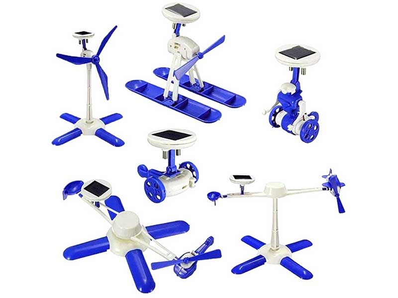 Un set de construcție educațional care vă permite să construiți șase vehicule robot diferite alimentate cu energie solară.