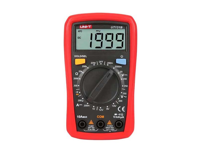 Multimetrul digital UT131B de dimensiunea palmei este o alegere bună pentru măsurarea tensiunii AC și DC, a curentului AC și DC și a rezistenței. Ecranul LCD clar de 2000 de contorizare cu iluminare de fundal oferă măsurători precise, ușor de citit (chiar și în condiții de iluminare slabă). UT131B are o funcție unică de testare a bateriei care afișează atât starea, cât și starea bateriei testate (bună, slabă, proastă). În plus, multimetrul are o diodă și funcție de testare a continuității cu sonerie.