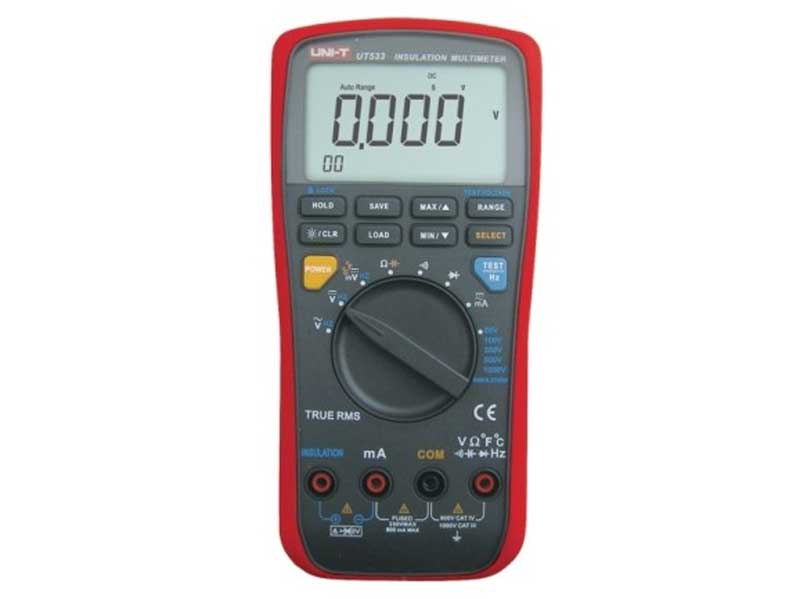 UNI-T UT533 este un multimetru digital avansat, proiectat pentru profesioniști în domeniul electric și electronic, cu funcție integrată de măsurare a rezistenței de izolație. Ideal pentru mentenanță, testare și diagnoză, UT533 oferă o gamă largă de măsurători de tensiune, curent, rezistență, capacitate, frecvență și temperatură, precum și funcții specializate pentru siguranță și eficiență în utilizare.