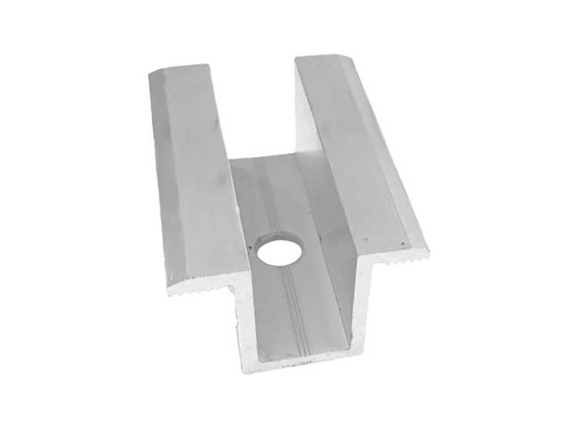 Clemă de mijloc cu design universal, destinată fixării panourilor solare în punctele de îmbinare dintre două module. Asigură o prindere fermă și sigură, menținând distanța optimă între panouri pentru o ventilație eficientă și funcționare stabilă.