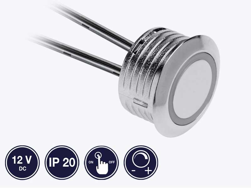 Intrerupator rotund tip buton cu control tactil prin senzor de atingere.