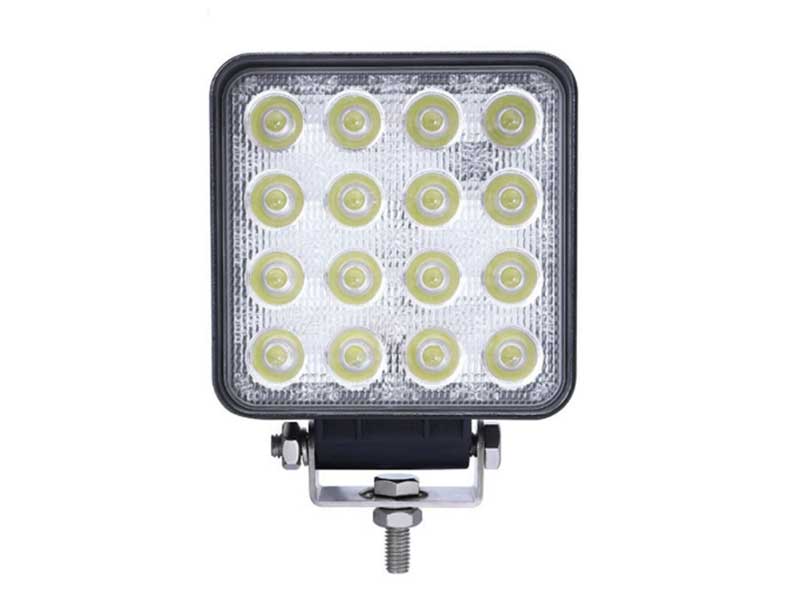 Proiector auto compact cu 16 LED-uri, alimentat la 12V, ideal pentru iluminarea suplimentară a vehiculelor, off-road sau utilitare, oferind un fascicul luminos intens și eficient.