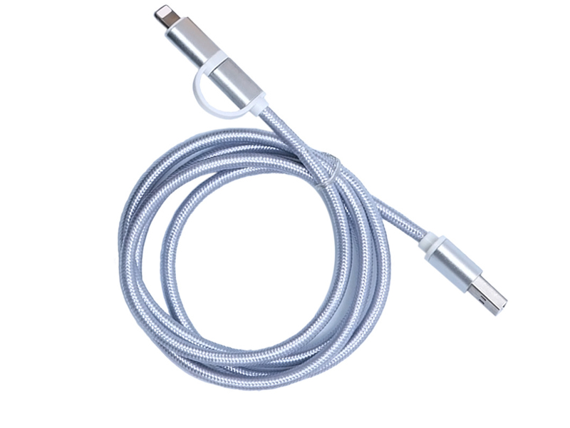Cablu textil 2 în 1 microUSB/iPhone – argintiu
